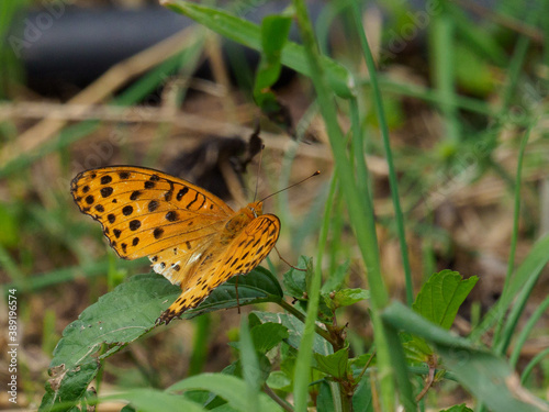 © Camewe, Fototapeta premium ダリヤとツマグロヒョウモン