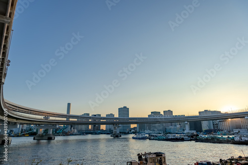 Obraz premium 東京都港区芝浦ふ頭から見た東京の都市景観