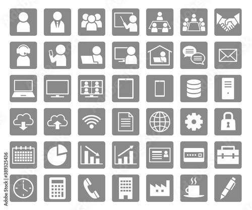 Fototapeta premium ビジネスオフィスシンプル白抜きグレー四角アイコンセット