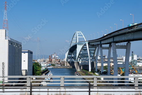 Obraz premium 南港通りから見る新木津川大橋と大正区の工業地帯