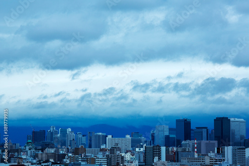 Obraz premium 台風が近づく町並み