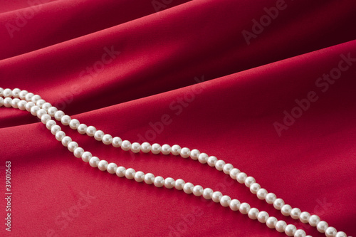 Fototapeta premium 赤いサテンのドレープとパール