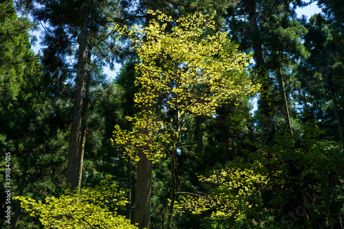 Obraz premium 新緑に包まれていきいきとした春の里山のイメージ