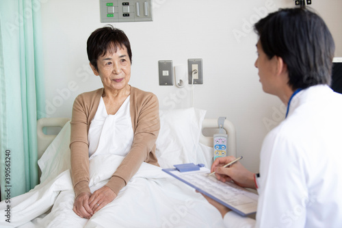 © Monet, Obraz premium 回診に来た医師と会話をする高齢者の女性