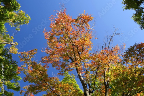 © smtd3, Naklejka premium 公園の紅葉の欅と青空