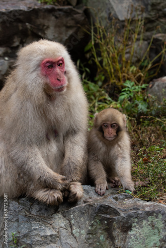 © rai, Naklejka premium ニホンザルの親子 子ザル