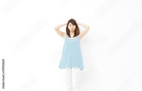Naklejka premium 頭を抱える女性