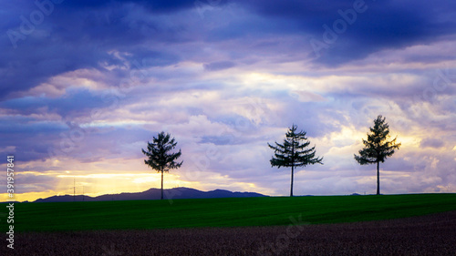 Obraz premium 北海道女満別メルヘンの丘の夕暮れ