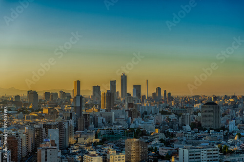 Obraz premium 東京都文京区後楽園から見る夕方の東京の都市景観