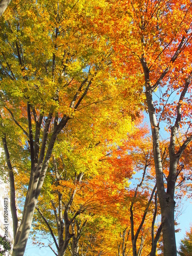 © smtd3, Fototapeta premium 住宅地のけやき道路の黄葉の欅