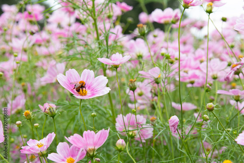 Obraz premium 茨城県、ひたち海浜公園のコスモスと蜂