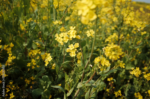 Obraz premium 넓은 들판에 가득 피어있는 노란 유채꽃