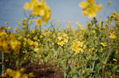 Obraz premium 넓은 들판에 가득 피어있는 노란 유채꽃