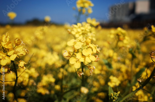 Obraz premium 넓은 들판에 가득 피어있는 노란 유채꽃