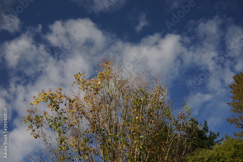 Obraz premium 秋の森 公園 紅葉 色付く 木々