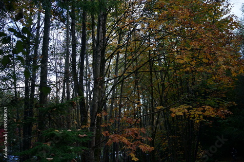 Obraz premium 秋の森 公園 紅葉 色付く 木々