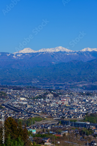 Obraz premium 長野県飯田市 南アルプスと飯田市街