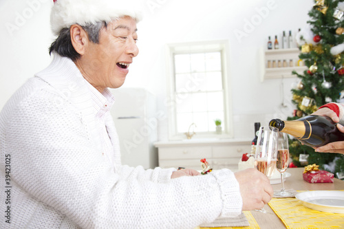© Paylessimages, Obraz premium シャンパンを注いでもらうシニア男性