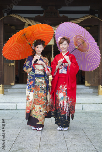 © Paylessimages, Fototapeta premium 和傘を差す振袖姿の女性2人