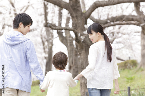 © Paylessimages, Fototapeta premium 桜並木を散歩する家族の後姿