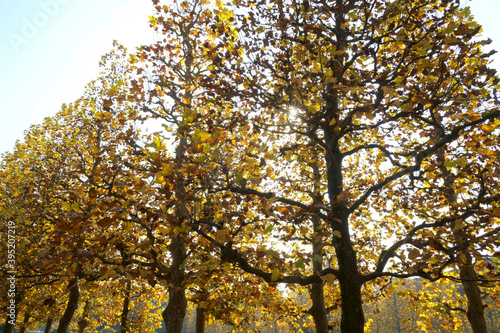 © askaflight, Obraz premium カラフルに紅葉した秋のプラタス並木