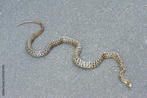 © 愛 高行, Fototapeta premium 縞模様の薄いシマヘビ(北海道・鶴居村)