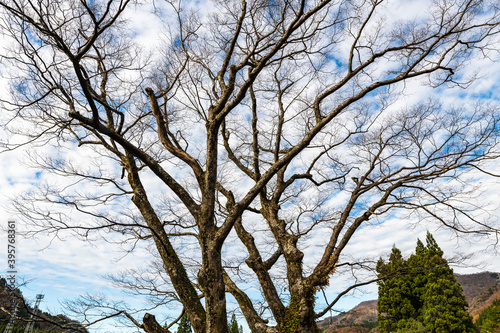 Fototapeta premium 山麓国道脇で風雪に耐えてきた欅の古木