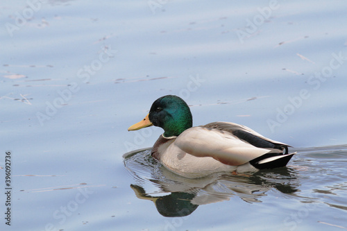 Obraz premium 水面を泳ぐオスのマガモ