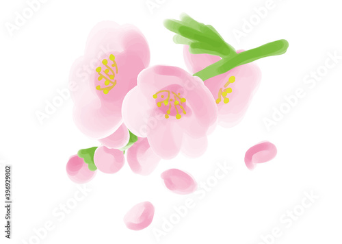 Fototapeta premium 桃の花と桃の花びら 水彩