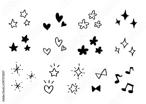 © ako, Naklejka premium おしゃれでシンプルな手書き風素材のセット 音符 星 ハート リボン