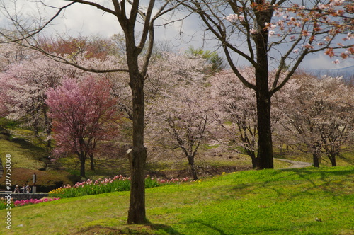 Obraz premium 桜の木々に囲まれた緑の綺麗な公園