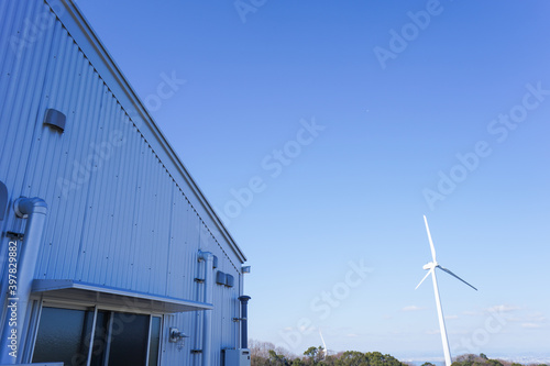 Fototapeta premium 風力発電機と倉庫