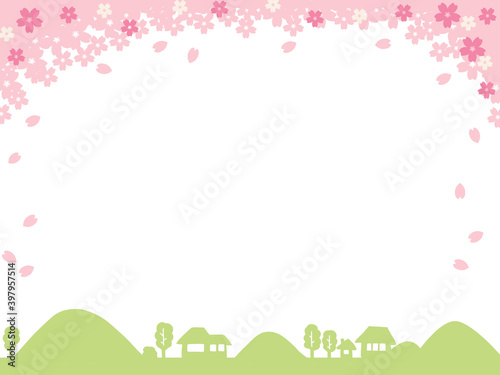 © ゆりゆりのゆり, Obraz premium かわいい桜と田舎町の春フレーム