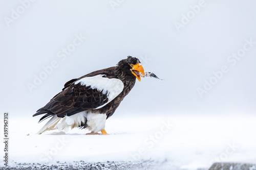 Fototapeta premium 魚を口に入れるオオワシ