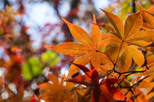Fototapeta premium 紅葉した楓の葉のクローズアップ