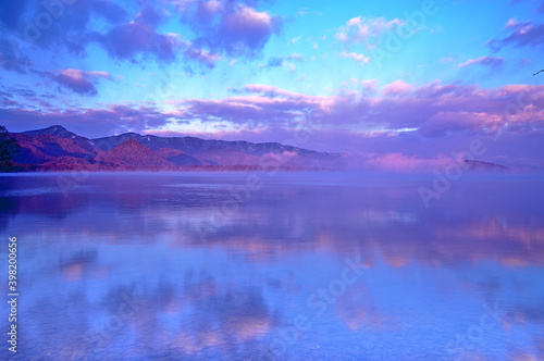 © Masa Tsuchiya, Fototapeta premium 雲の浮かぶ空を水面に映す湖