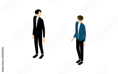Obraz premium アイソメトリック、立ち止まる男性と振り返る男性