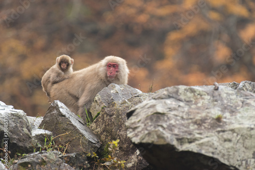 © rai, Obraz premium 背中に子供を乗せたサルの親子