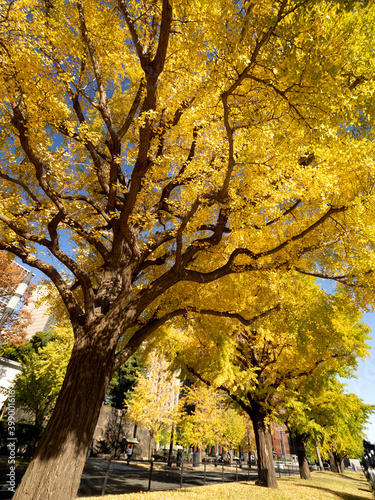 Fototapeta premium 東京都 丸の内オフィスビル街とイチョウ並木
