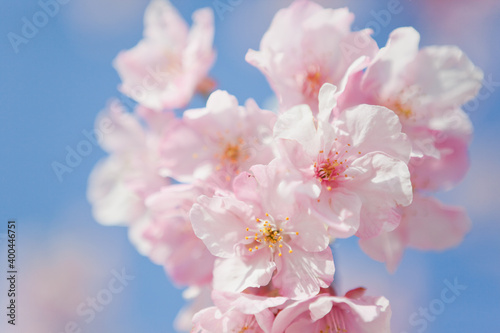 © 田村広充, Fototapeta premium 青空を背景にハイキーに写したカワズザクラ