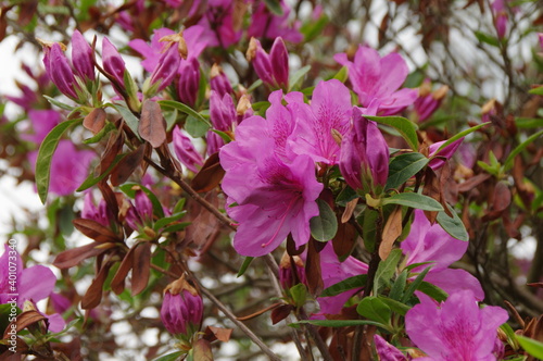 Obraz premium 節度・慎みの花言葉のつつじ、輝くようなピンク色の花弁