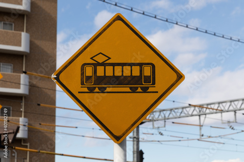 © YK-image, Obraz premium 踏切あり 道路標識