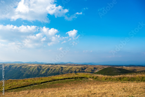 © doraneko777, Fototapeta premium 秋の大観峰から見る阿蘇市街と阿蘇五岳【熊本県】