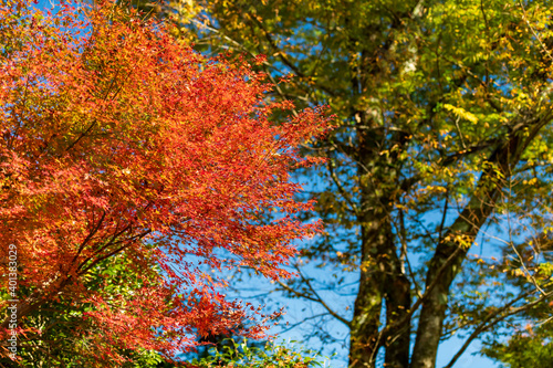 © doraneko777, Obraz premium 秋の天岩戸神社と岩戸川の爽やかな渓谷