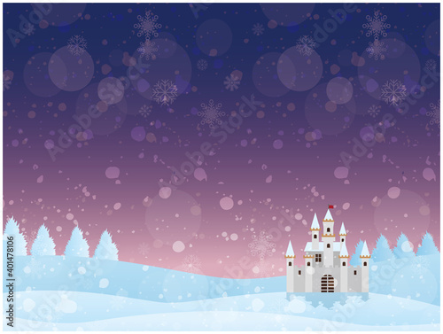 © ken, Naklejka premium 夜空 雪国 背景 お城