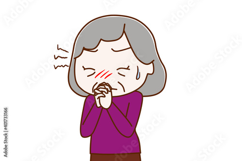 Obraz premium 苦しい時は神頼みでお祈りする高齢の女性