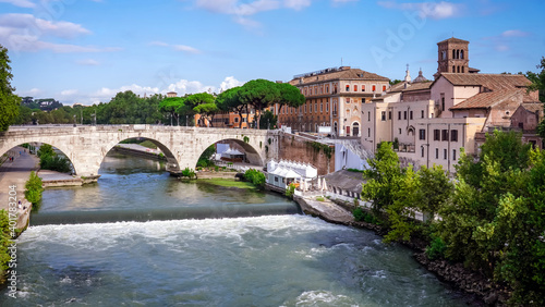 © WAWA, Obraz premium テベレ川に架かるパラティーノ橋からケスティウス橋(ティベリナ島のファーテベネフラテッリ病院やサン・バルトロメオ・アリソーラ教会)
