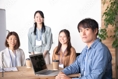 Obraz premium 服装自由な会社で働く会社員