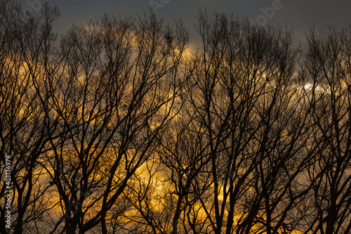 Obraz premium 夕焼けと林のシルエット