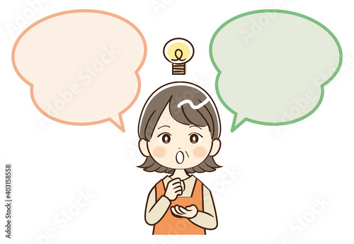 Obraz premium 女性 主婦 ミドル世代 おばさん 吹き出し 閃く